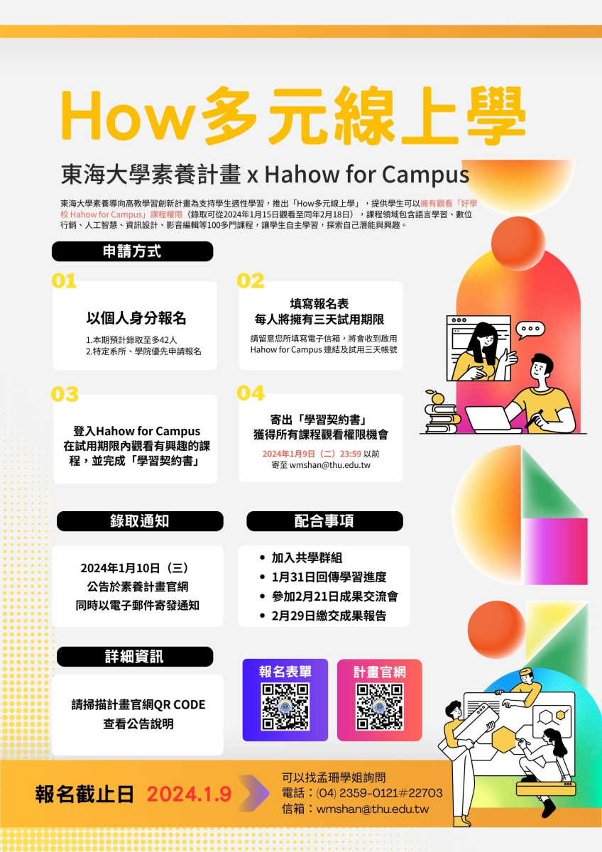 ⭓ 本期錄取學生可觀看「好學校 Hahow for Campus」課程權限:從2024年1月15日至2月18日。